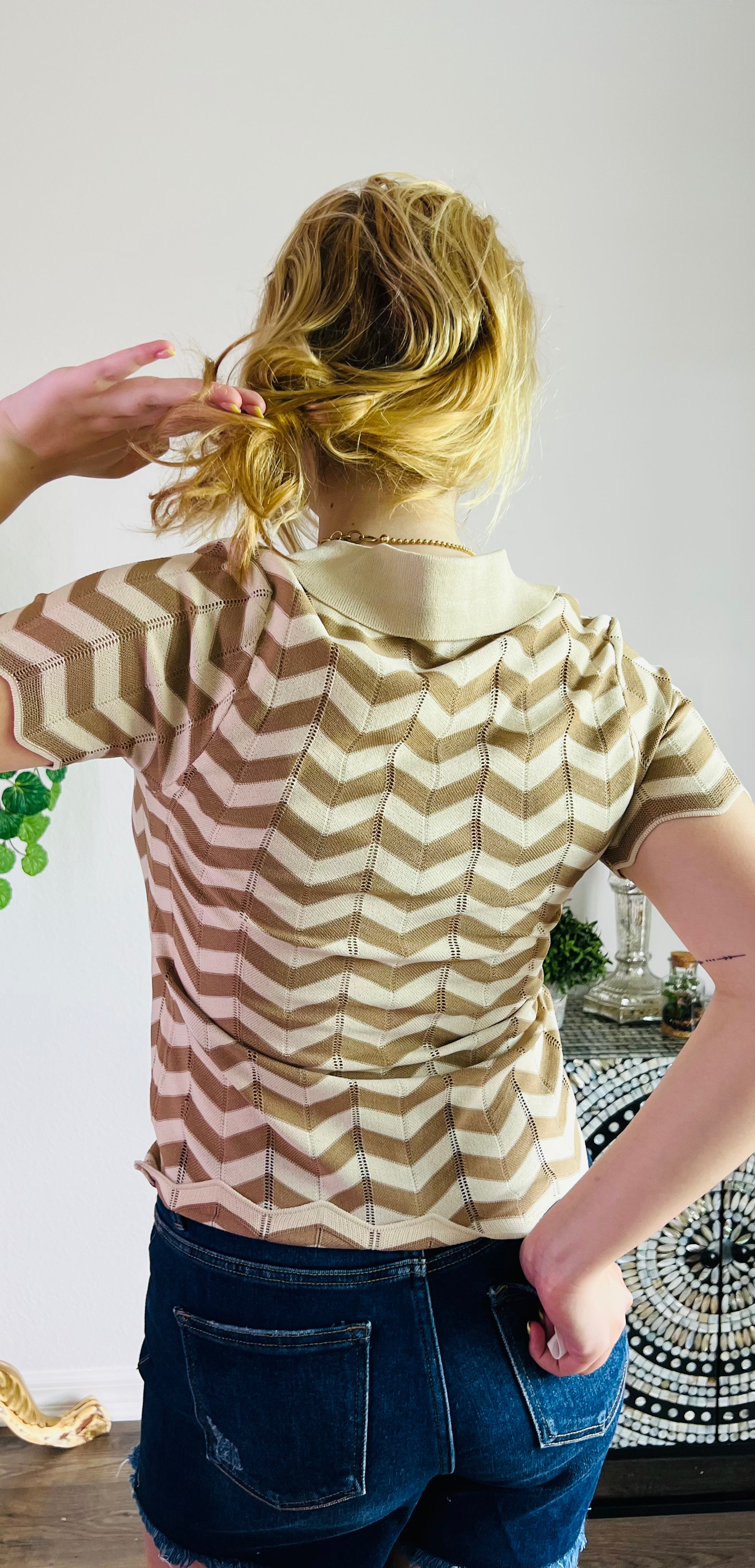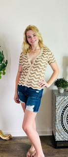 Chevron Modern Button-Down Knit Top